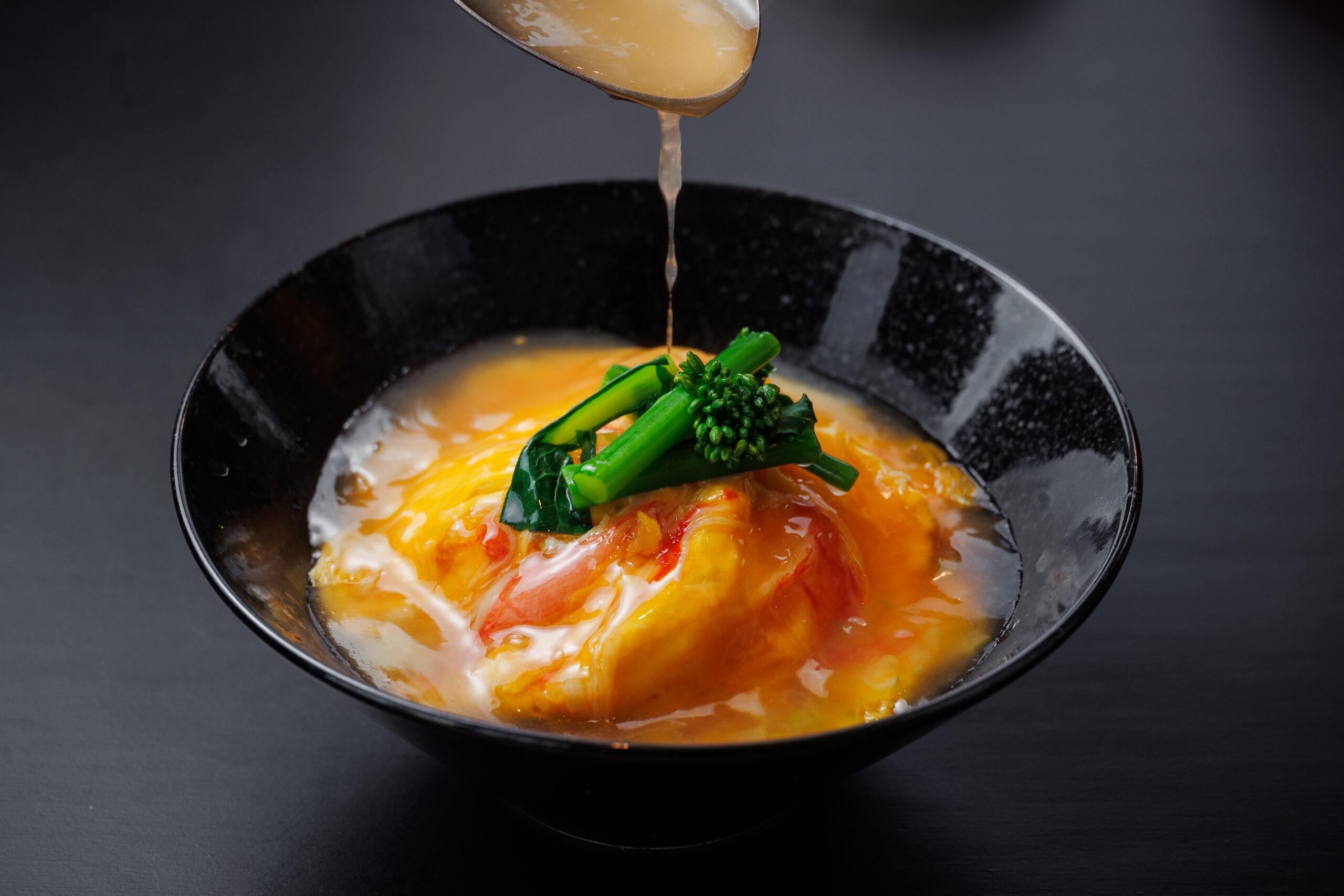 放し飼い鶏の卵をふんだんに、親鶏だしで作る特製あんで食べる