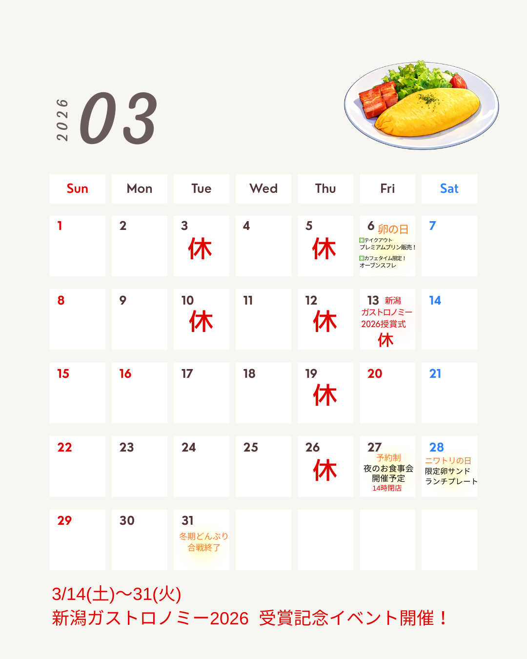 3月14日(土)より、限定メニューの販売を予定しています。
